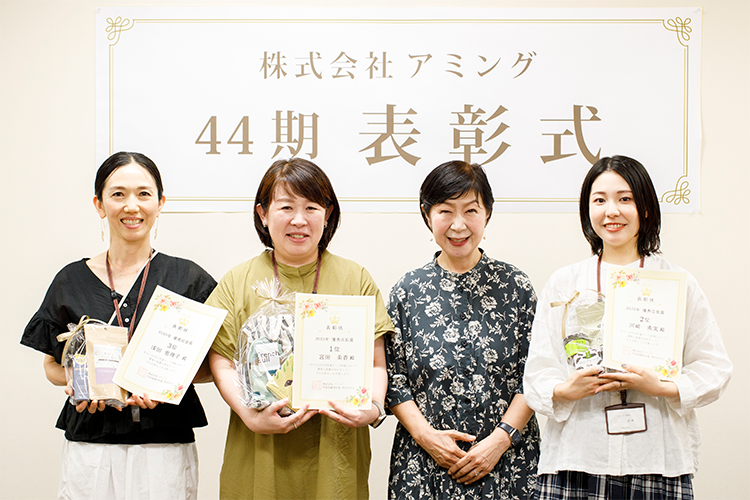 数値的評価に加えて、スタッフの日々の努力や人間性も加味し、いかにお客様を大切にしているか、いかにお客様に感動を与える売場づくり・応対をしているか評価し表彰・賞与に反映しています。